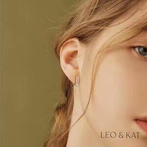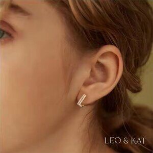 Gold Pave Square Huggie Earrings. 925 Sterling Silver. #1044
