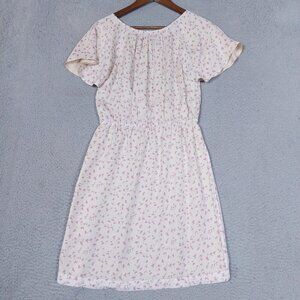 J.Crew A-line Dress Women's 2 Ivory Floral 100% Silk Short Sleeve Mini Cottage