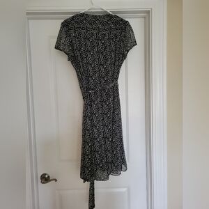 Chiasso Short Sleeve Black/White Floral Tie Waist Dress - Size 14. Chest has buttons and pleats.