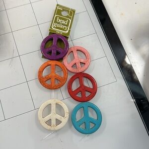9 bags and two strands. Peace signs, elephants, hamsa hands, Buddha heads, sunflowers, stone-like, real-stone, wood-like, and real wood, daisies, tree and more. Make friendship bracelets for your friends. Part of my craft room clean out as I just don’t make jewelry like I thought I might.
