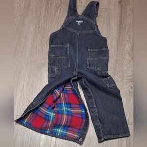 OshKosh B'Gosh jean Overalls infant-toddler size 24 months. They are plaid flannel lined with snaps on the legs. They are in excellent like new condition.