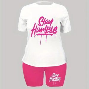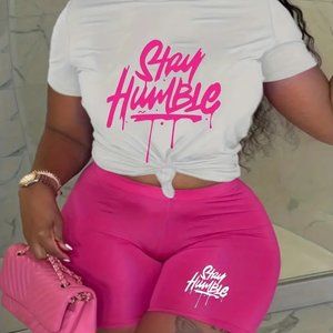 T-Shirt & Shorts Two-piece Set, Letter Print Short Sleeve Casual T-Shirt…NWOT