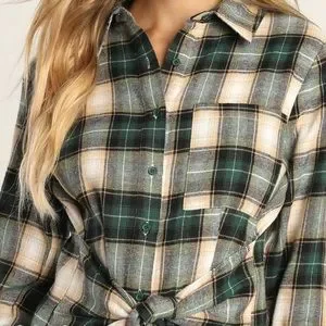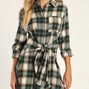 Green Plaid Tie-Front Dress 💚