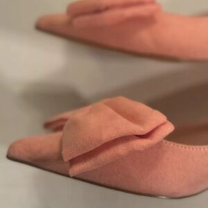 Journee Womens Orana Coral Pink Bow Faux Suede Pointed Toe Low Heels Pumps 7.5