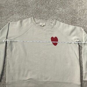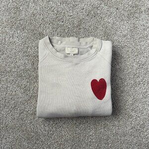 keywords: sézane x bobo choses crewneck off white beige oatmeal red heart sweatshirt sz medium valentine valentine's day