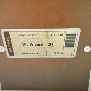 This is a Longaberger 2 Qt. Pitcher in Paprika. It measures 7.5 inches high. It is made of vitrified china and is dishwasher, oven, microwave, and freezer safe. This pitcher is brand new and has never been used. Comes in its original box and packaging with a Longaberger product card. Comes from a smoke and pet free home.