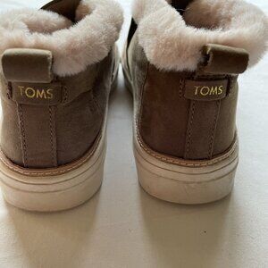 Excellent condition. Worn twice. Suede ankle boot. Slip on shoe. Super soft and fuzzy inside. TOMS Paxton slip on. Caramel brown shade. Size 7. No holes or stains. Smoke free home. #toms #mama #mamashoes #ankleboots #suede #fuzzy #cozy