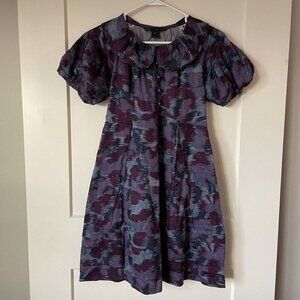 VGUC. Minimal wear. Purple and blue print dress. Peter Pan collar and puff sleeves. Buttons down chest. Marc by Marc Jacob’s size 2. No holes or stains. Smoke free home.
