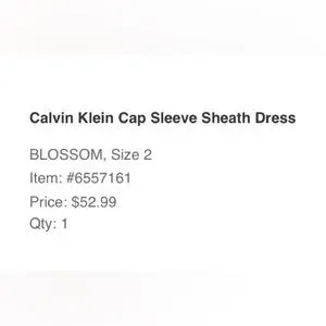 CALVIN KLEIN Cap Sleeve Lined Sheath Dress