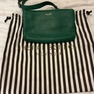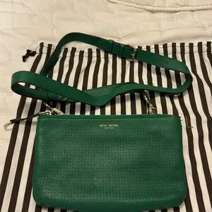 Henri Bendel crossbody 3 in 1 handbag, Kelly green. 2 sep pieces make one, and you can put the strap on each piece and have 2 sep cross bodies.