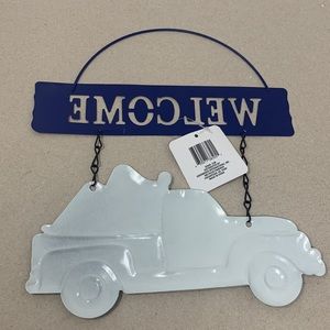 PATRIOTIC METAL BLUE PICKUP TRUCK W/ USA FLAG WELCOME SIGN WALL DOOR USA decor
