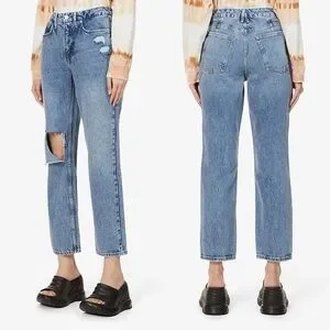 Good American Good 90s Duster Tapered High Rise Jeans in Blue950 Size 16