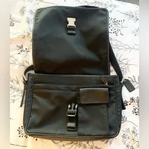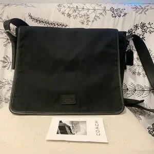 UNISEX Coach BLK leather trim messenger stylish and durable. Fast Shipping!