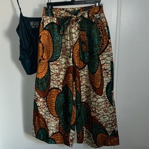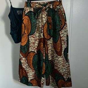 Excellent preloved condition - Women’s Abstract Batik Print Crop Culotte Belted Trouser Pant