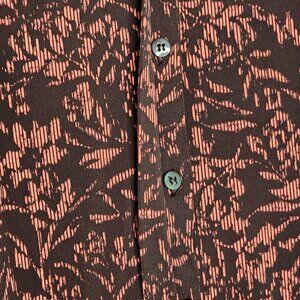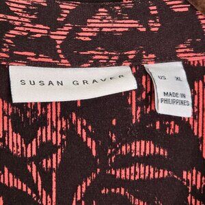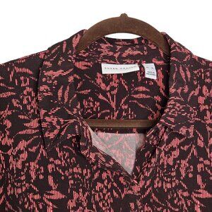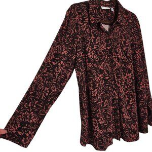 Susan Graver Womens Printed Button-Down Blouse XL Black/Rust Long Sleeve