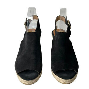 Kanna Espadrille Wedge Sandals Black Suede Peep Toe Slingback Size 9.5 Casual