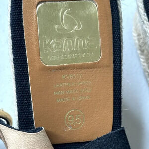 Kanna Espadrille Wedge Sandals Black Suede Peep Toe Slingback Size 9.5 Spain Casual