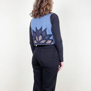 Vintage Handmade Cropped Vest Scandinavian Nordic Floral Print Crop Quilted Boho