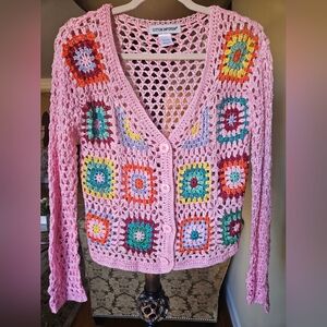 NWOT Cotton Emporium patchwork crochet sweater pink/multicolor
