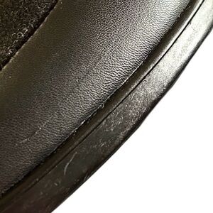 Classic style step in loafer by Comfortview. Black leather look with faux suede top. Approximately 2 inch stacked heel. In very good condition with exception of scratch shown in photo. These are wide shoes. Comfort and style to wear all day and night. Perfect to pair with business attire or casual.