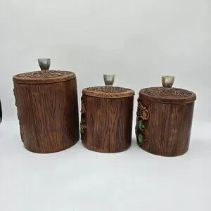 Vintage Treasure Craft US Canister Set - Flour Coffee Tea - Wood Look Ceramic wi