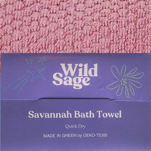 brand new Mauve Pink color Wild Sage™ Savannah Quick Dry 90% Cotton 10% Polyester ... 2 Bath Towels + 2 Hand Towels + 2 Washcloths. Each bath towel is 30 x 54 inches. Each hand towel is 16 x 28 inches. Each washcloth is 13 x 13 inches. Machine washable. Condition is brand new with original retail tags.