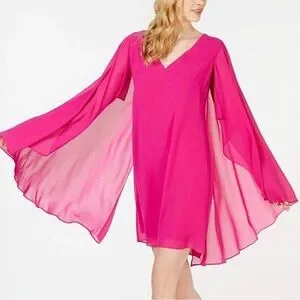 Vince Camuto Chiffon Flowy V-Neck Cape Dress, Size 4, Hot Pink