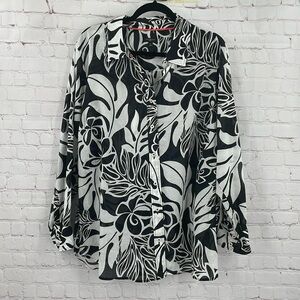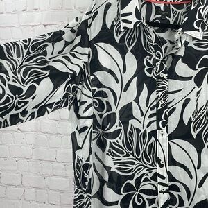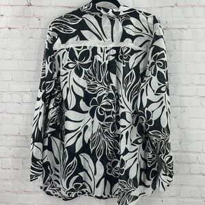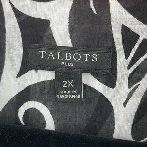 Talbots Plus Size 2x Black And White Patterned Sheer Shirt Long Sleeve Button Up