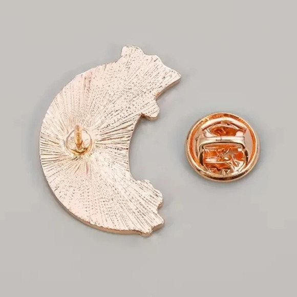 Romantic pin with Usagi / Mamoru silhouette inside a crescent moon. Embellished with hearts and sakura blossoms. Adorable for Sailor Moon fans. Made of zinc alloy and enamel.