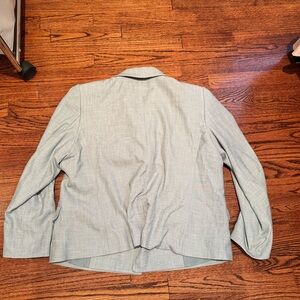 High waisted seamed pencil skirt in cross weave AND double breasted blazer in cross weave. Color is Dusty Willow Green. Both size 16.