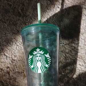 Starbucks blue/aqua/greenish plastic cup with straw