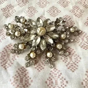 Vintage Large Massive Judy Lee faux baroque pearl rhinestone spray brooch Pin from 1950s. Missing a small pearl. See photo. Otherwise excellent condition.