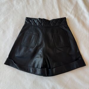Sandro Black Leather Quilted Waist Cuffed Hem Shorts Size 38