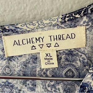 Alchemy Thread Dress XL Blue Print Asymmetric Babydoll Fairycore Fairy Boho