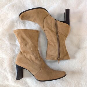 Predictions Square Toe Block Heel Suede-Like Ankle Boots