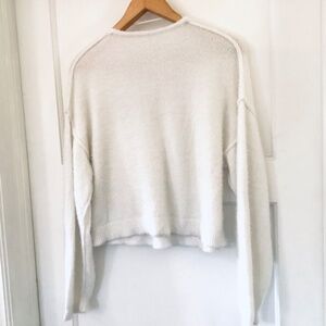 Free People Sweater Womens Size XS Cream Fuzzy Deep V-Neck Boho Casual Stretch
