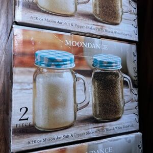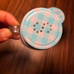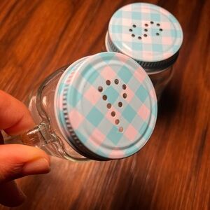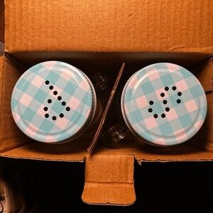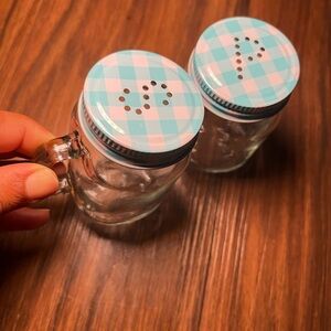 Circleware Moondance Mason Jar Salt and Pepper Shakers with Blue and White Gingham Lids, Set of 2, 5oz, Clear