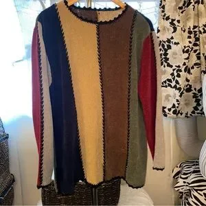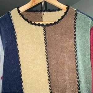90’s Patchwork Colorblock Vintage Soft Chenille Knit Sweater Size Large