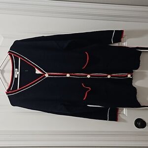 Dark Navy Blue w Red, White Trim
