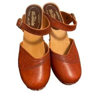 Skandals Sweden New York Vintage 60s 70s Bohemian Leather Cut Out Round Toe Wooden Clog