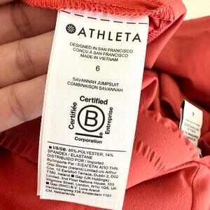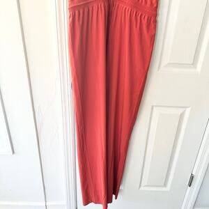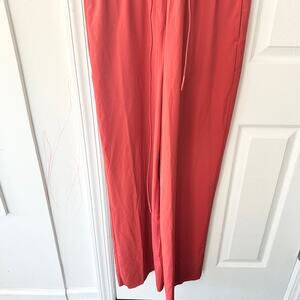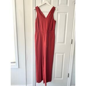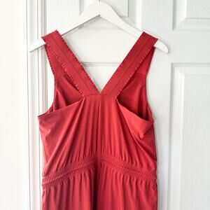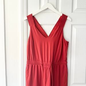 Athleta Savannah Rust Orange Currant Red Ruffle Strap Wide Leg Jumpsuit 6