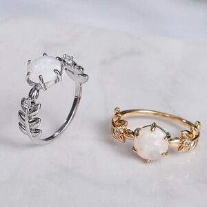 Dainty Opal CZ Silver Plated Beautiful Fashion Leaf Trendy Ring for Women, UNVN12033