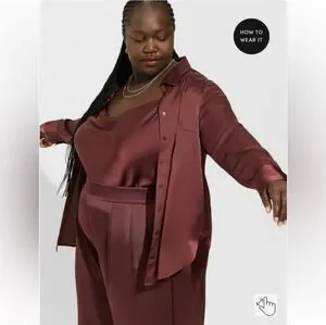 NWT Torrid Madison Satin Button-Up Long Sleeve Shirt Size 1X 14-16