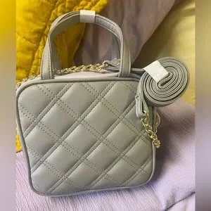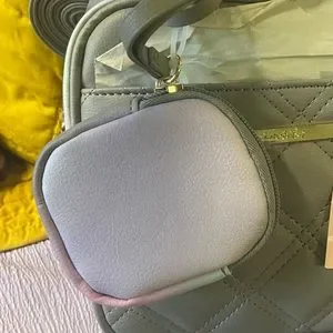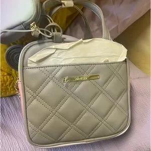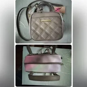 This stylish satchel from Luv Betsey by Betsey Johnson is a must-have for any fashion-forward woman. The bag features a square shape and a grey multi-color exterior with eye-catching accent details such as a strap accent, a quilted finish, and gold hardware. The bag has a top handle with a crossbody strap for versatile wear, and comes with a bonus small pouch, detachable strap, and coin purse for added convenience.