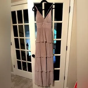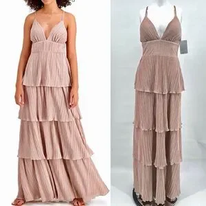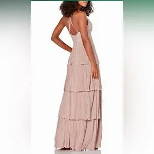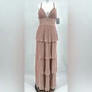Dusty light pink Rose gold tiered layered maxi cocktail evening party gown dress