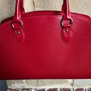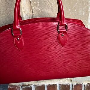 Louis Vuitton red epi leather pont neuf PM handbag preowned condition