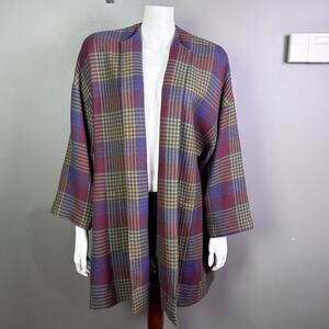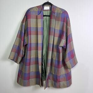 Jun Ashida Paris coat medium plaid houndstooth colorful wool oversized shawl