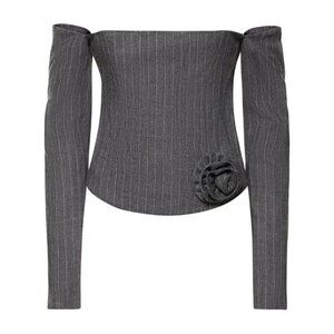 SAKS POTTS Bea Corset in Grey Pinstripe Small New Womens Srapless Top Blouse