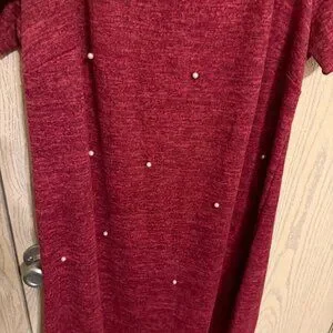 Tacera Women’s Dress, Burgundy with pearl accents, Size 1X