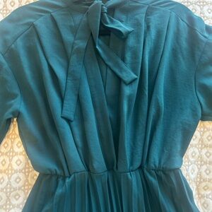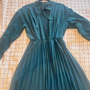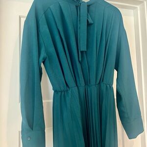 Deep green midi long sleeve dress with pleats from Zara